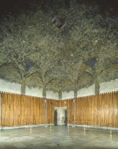 Ore 9,15 circa, arrivo al Castello Sforzesco e visita della Sala delle Asse di Leonardo, riaperta al pubblico dopo il restauro. Grazie a una tribuna si potrà ammirare da vicino il monocromo e le tracce dei disegni preparatori di paesaggi, tronchi, rami e foglie emersi dopo la rimozione dello strato di scialbo dalle pareti. È prevista anche la visita delle due sale contigue: la Sala dei Ducali e la Sala delle Armi con un percorso multimediale che conduce i visitatori alla scoperta virtuale dei luoghi di Leonardo a Milano. Dato che non è permessa la sosta per più di otto minuti in ciascuna sala, si prevede di lasciare il Castello dopo circa un'oretta. Si risale in pullman per andare alla Casa degli Atellani in Corso Magenta, 65.