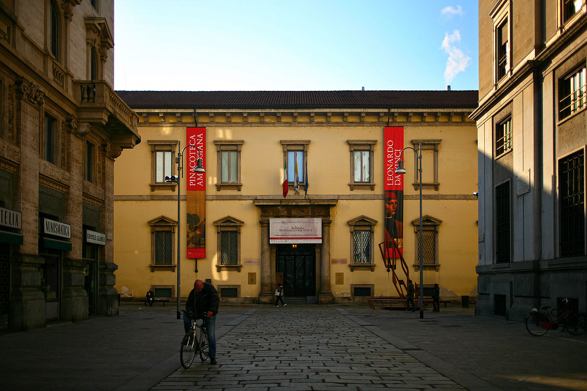 Per la Pinacoteca ricordiamo almeno la celebre Canestra di frutta di Caravaggio, il gigantesco cartone preparatorio della Scuola di Atene di Raffaello, il Musico di Leonardo, unica tavola di Leonardo presente a Milano, e poi Botticelli, Tiziano, Ghirlandaio, Bramantino...