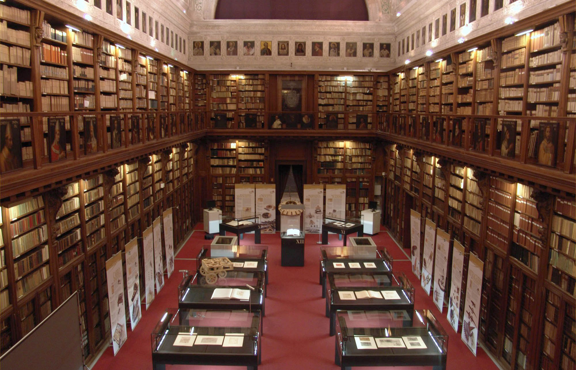 Tra le meraviglie e i tesori che il cardinale aveva acquistato, raccolto e commissionato si possono ricordare il Virgilio appartenuto a Petrarca e miniato da Simone Martini, l’Ilias picta ossia le più antiche miniature esistenti (V secolo), il Marziale autografo del Boccaccio, il De perspectiva pingendi di Piero della Francesca, il De divina proportione di Luca Pacioli, migliaia di codici preziosi e antichi in tutte le lingue e da tutte le culture, palinsesti, libri d’ore.